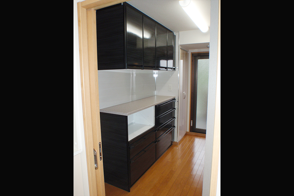 ・配膳用の開口を設けると、ちょっと開放感とリビングとの会話も出来ます。