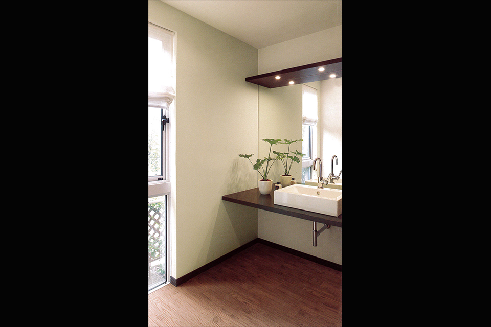 洗面室の大きな鏡