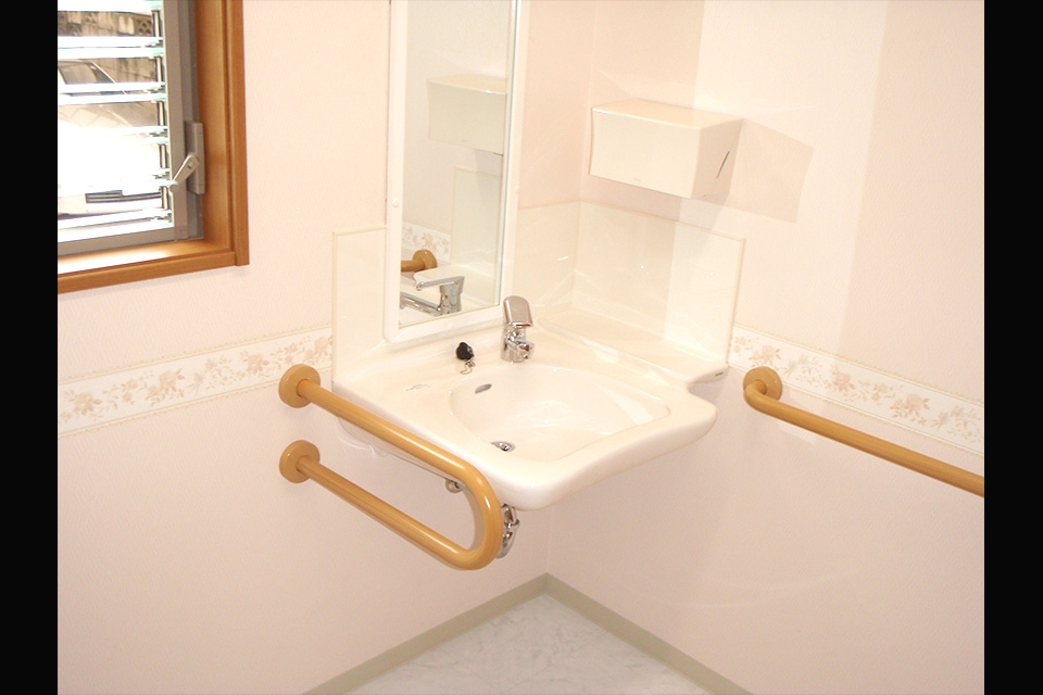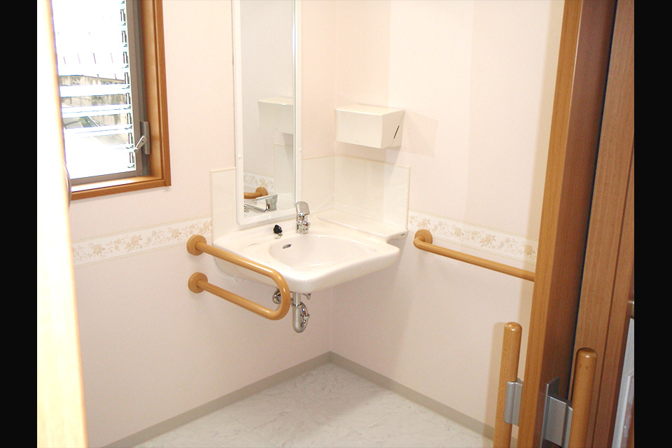 ・入口は引き戸・便器用・手洗い用手すりが必要です。・スペースも通常の2.5倍程度必要です。