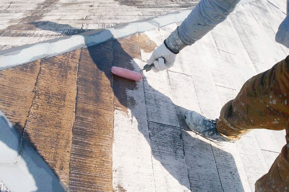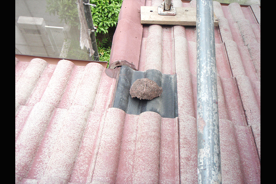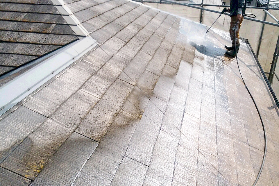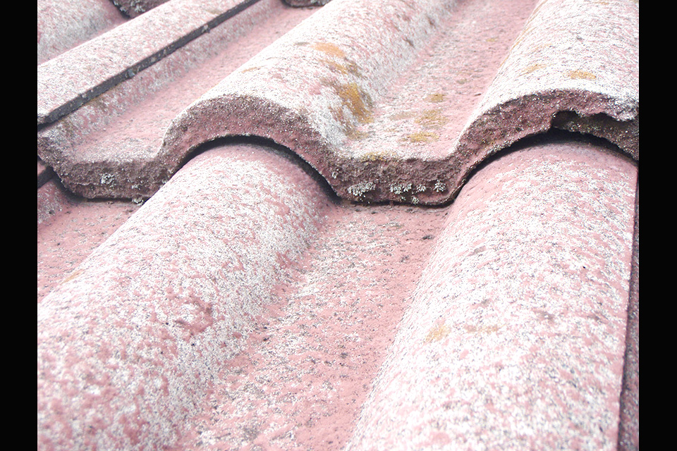 ・屋根材表面の塗膜が取れてきたり、表面に苔が生えてくるような劣化症状が出てくると、屋根材に雨水が浸透して冬であれば凍結で割れたりします。