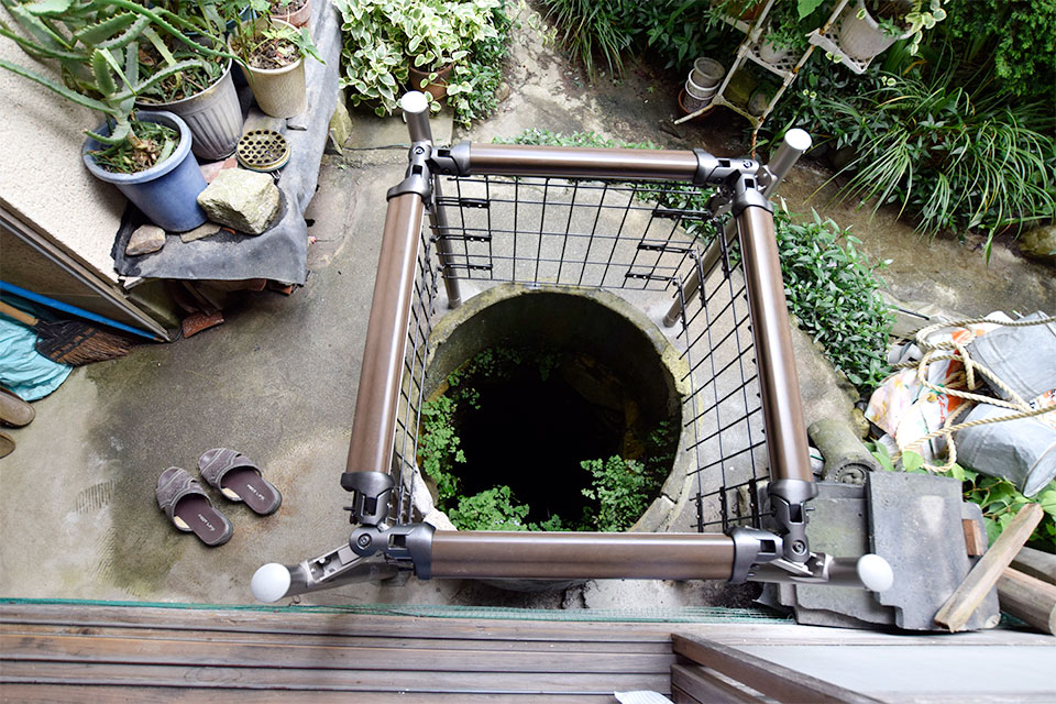 この井戸には以前は木で作った手摺りがあったのですが、風雨に負けてしまい今度はアルミでということで設計してみました。