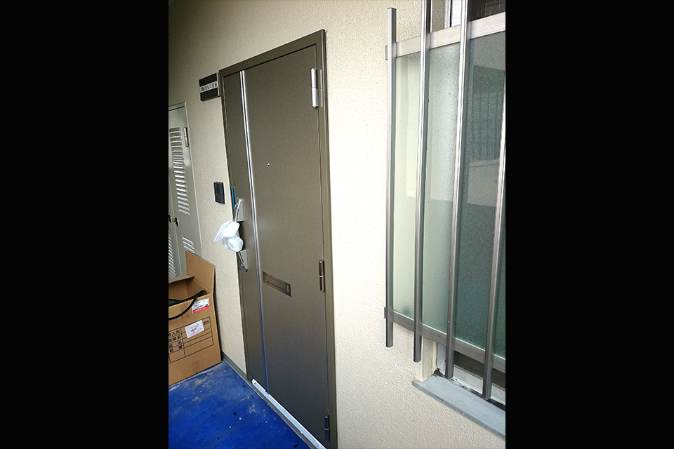 ・既設ドア枠の上に当たらしいドア枠を取付しドアをセット。