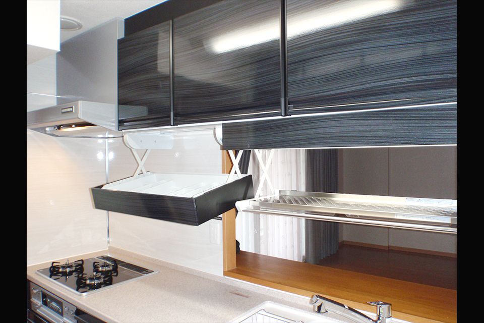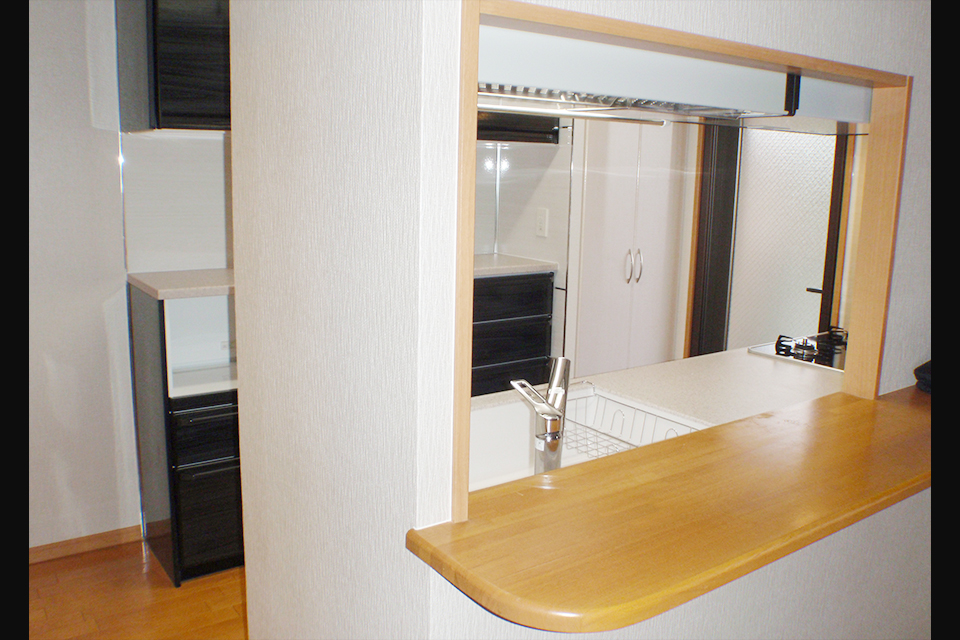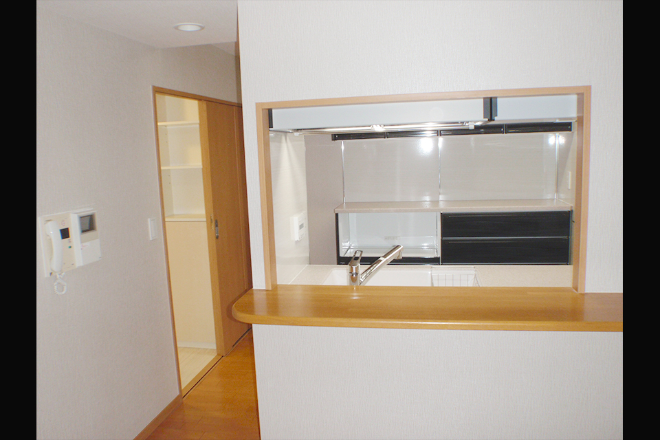 ・配膳用の開口を設けると、ちょっと開放感とリビングとの会話も出来ます。