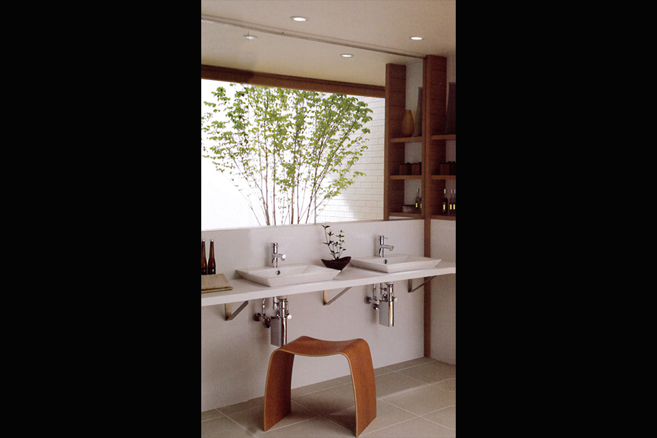 洗面室の大きな鏡