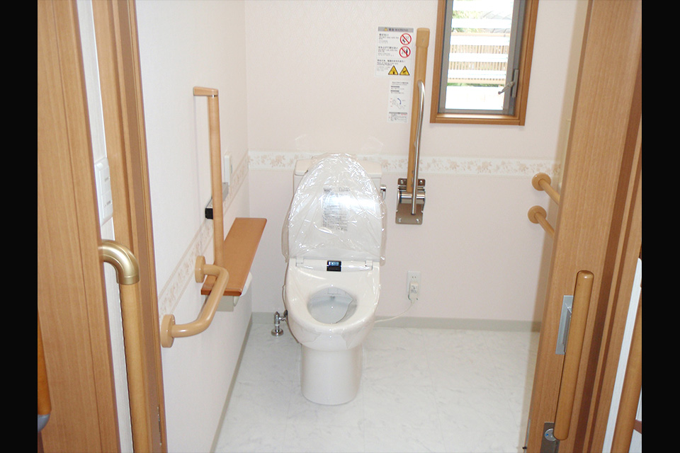 ・入口は引き戸・便器用・手洗い用手すりが必要です。・スペースも通常の2.5倍程度必要です。