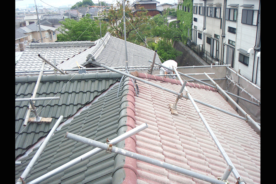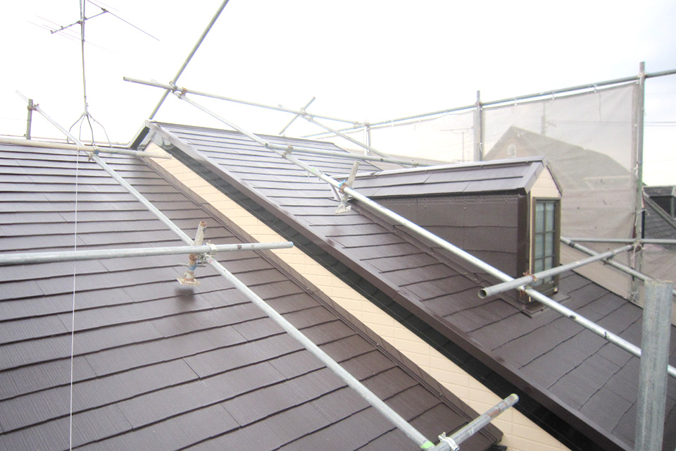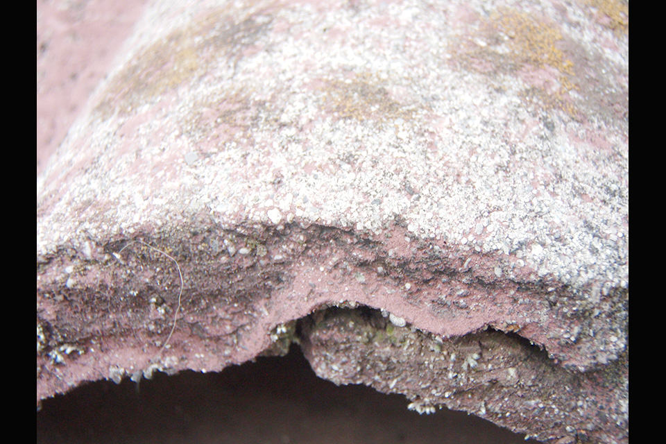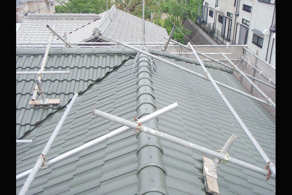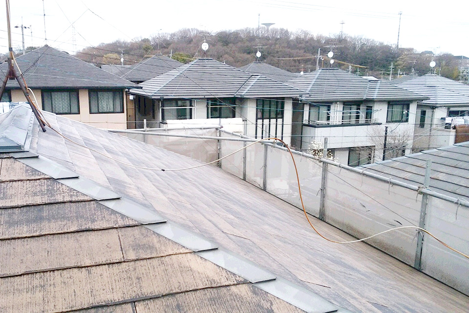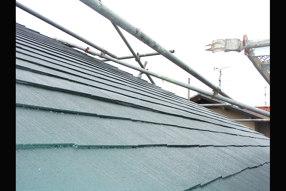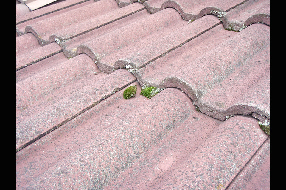 ・屋根材表面の塗膜が取れてきたり、表面に苔が生えてくるような劣化症状が出てくると、屋根材に雨水が浸透して冬であれば凍結で割れたりします。